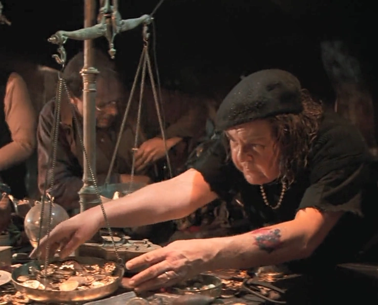 A scale, with one side weighed down with pirate doubloons. When gold is removed or the side is lifted up, a series of pulleys and winches activate, which reel in the Inferno's anchor.