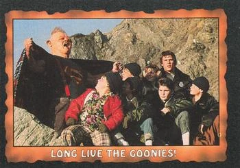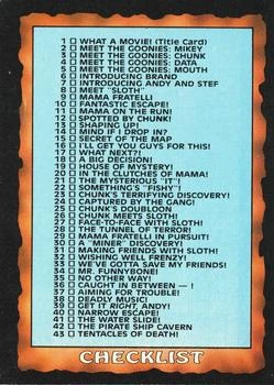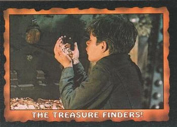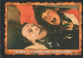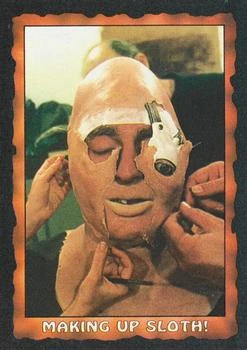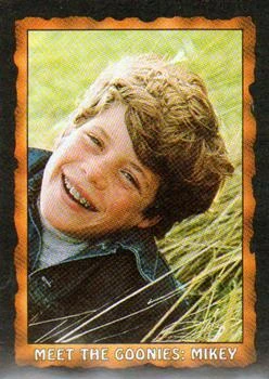 Trading cards for The Goonies feature either a character or scene from the movie on the front. The back has a short description of the subject.