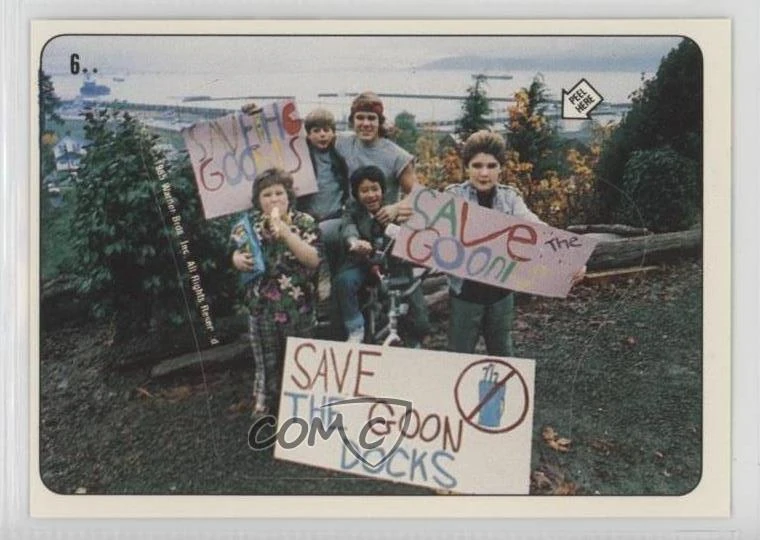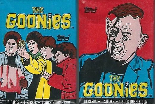 In 1985, to promote The Goonies, Topps Trumps released a series of Goonies-themed trading cards. The full set included eighty-six trading cards and fifteen sticker cards. Packs of cards also came packaged with a stick of bubble gum.